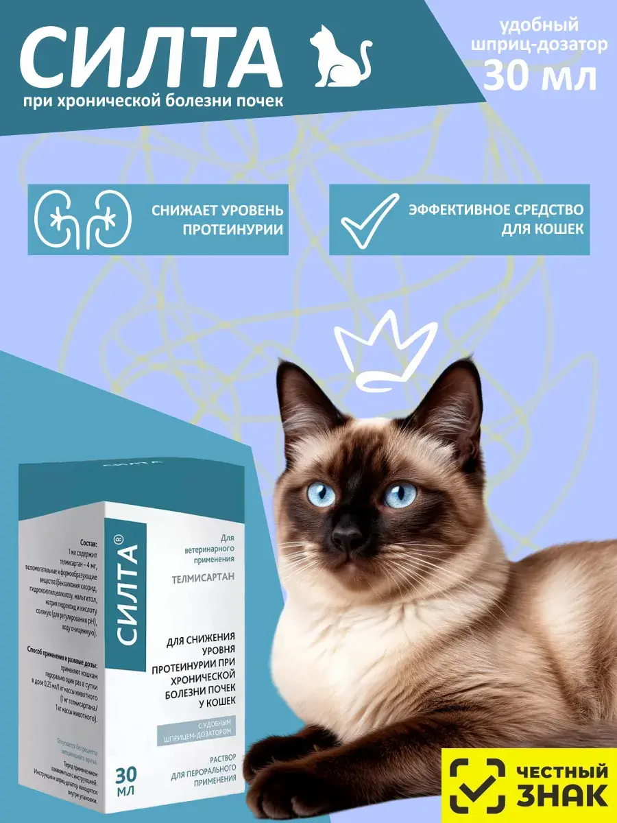 Препарат прост в применении: его можно добавлять в питьевую воду или корм, что облегчает процесс лечения для владельцев и снижает стресс для животного. Силта подходит для длительного использования, что позволяет поддерживать здоровье почек на протяжении всего курса терапии.
